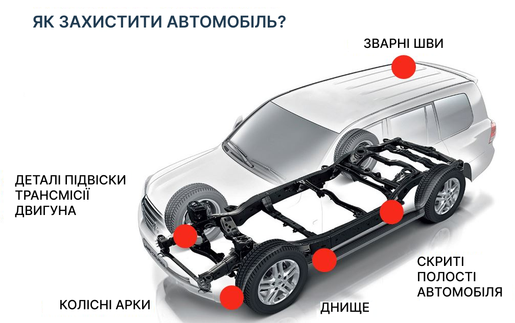 - Мастика – для днища, порогів і арок, захищає від механічних пошкоджень.