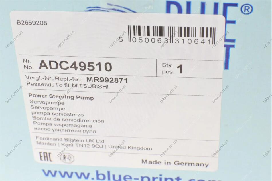Насос гідропідсилювача керма BLUE PRINT ADC49510