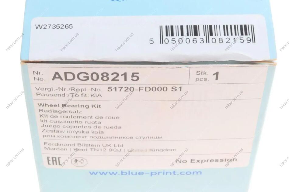 Підшипник маточини колеса Передня вісь, двостороння сторона BLUE PRINT ADG08215