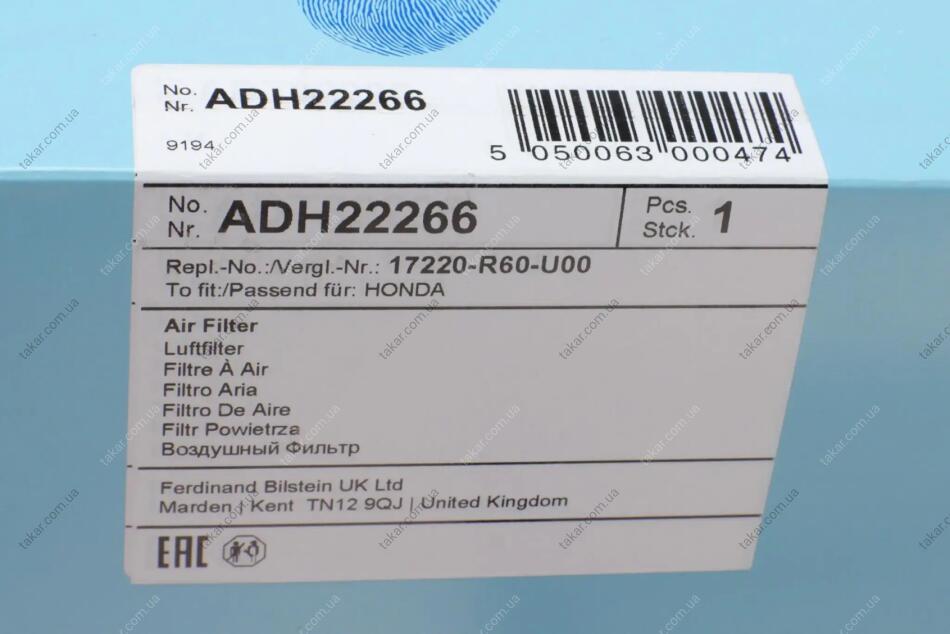Фільтр повітряний BLUE PRINT ADH22266