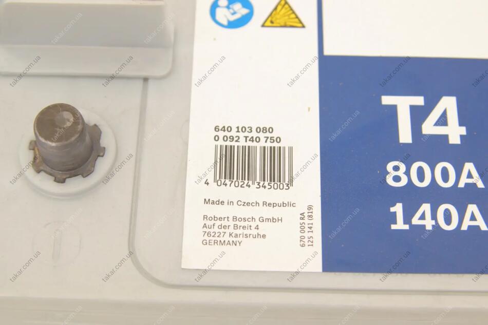 Акумулятор 12В/140Аг/800А/35,76кг BOSCH 0 092 T40 750