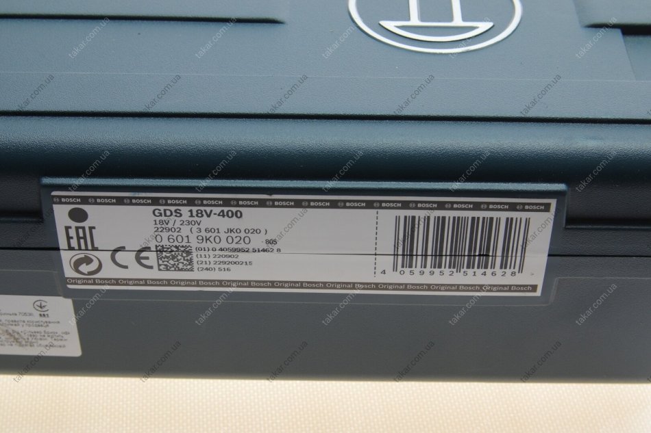 Гайковерт акумуляторний 1/2" (400 Nm) 18V з 2 акб + зарядний пристрій BOSCH 06019K0020
