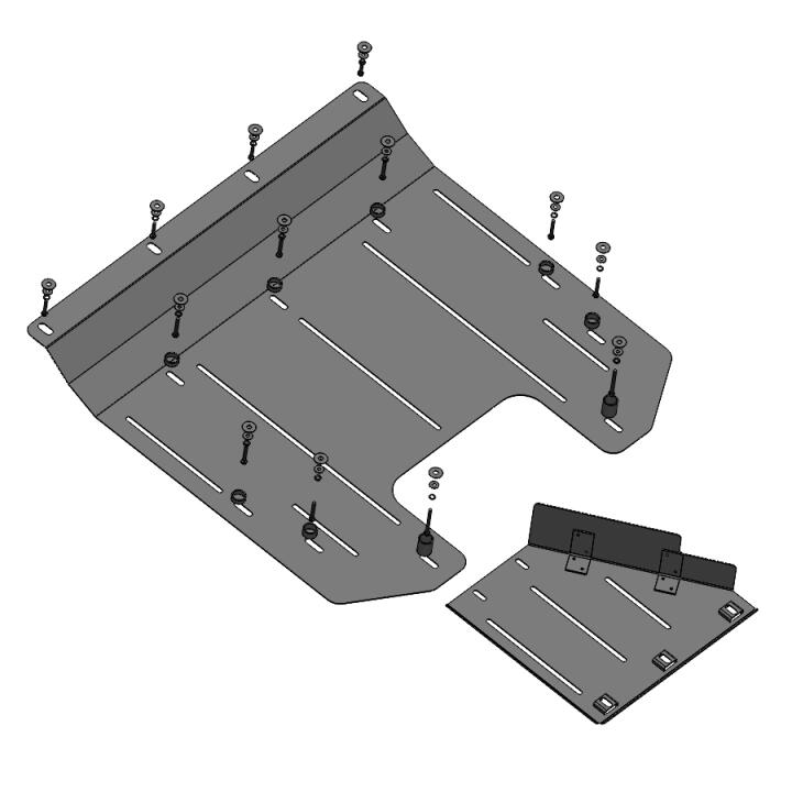 Виготовлена з високоякісної оцинкованої сталі (матеріал Premium) захист двигуна, КПП BYD Song Plus гібрид 2023- має високу міцність і оптимальну жорсткість, а також стійкість до зношування й збільшує термін служби виробу, допомагає антикорозійне полімерне покриття металу. Завдяки такій конструкціїї, від ймовірних пошкоджень та попадання води надійно закриті двигун, КПП автомобіля. Виріб укомплектований набором відповідних кріплень та інструкциєю з монтажу, за допомогою яких може бути встановлена навіть непрофесіоналом.