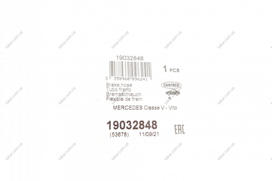 Шланг гальмівний CORTECO 19032848