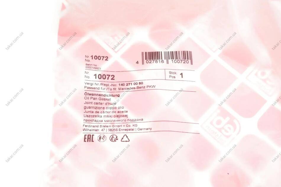 Прокладка масляного піддону АКПП FEBI BILSTEIN 10072