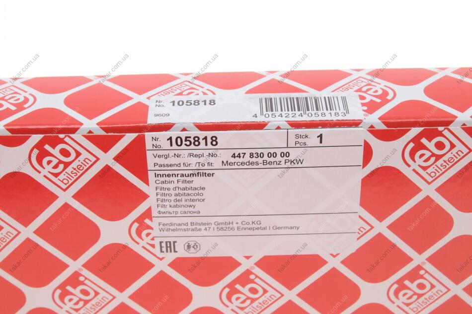 Змінний фільтруючий елемент повітряного фільтра салону FEBI BILSTEIN 105818