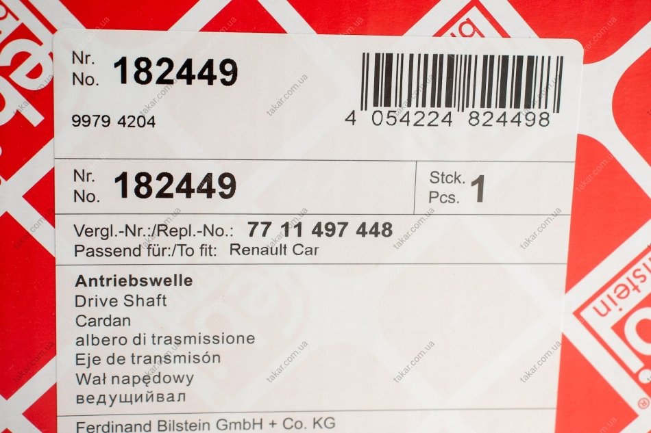 Вал приводний RENAULT (FEBI) FEBI BILSTEIN 182449