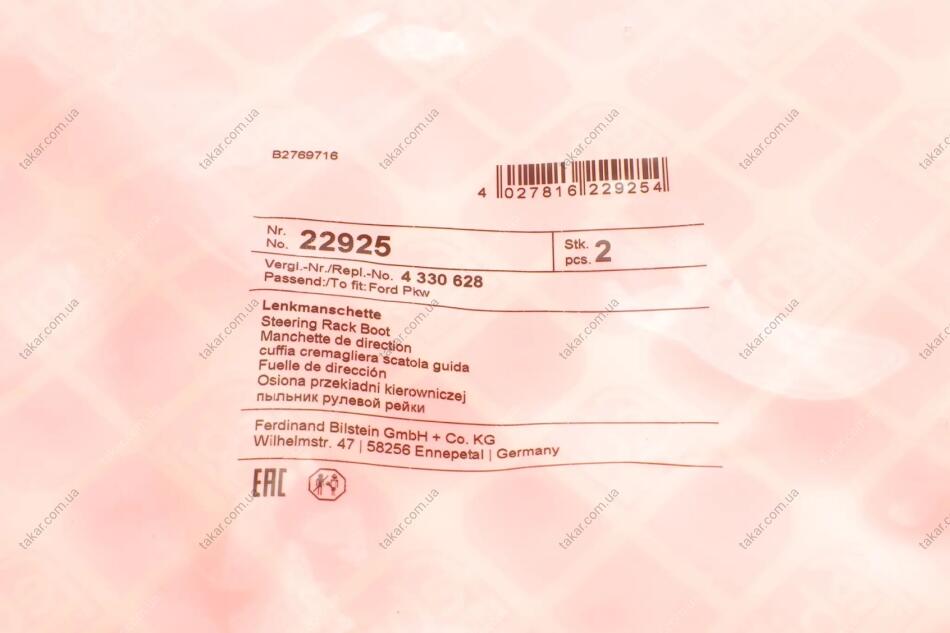 Пильовик рульової рейки FEBI BILSTEIN 22925