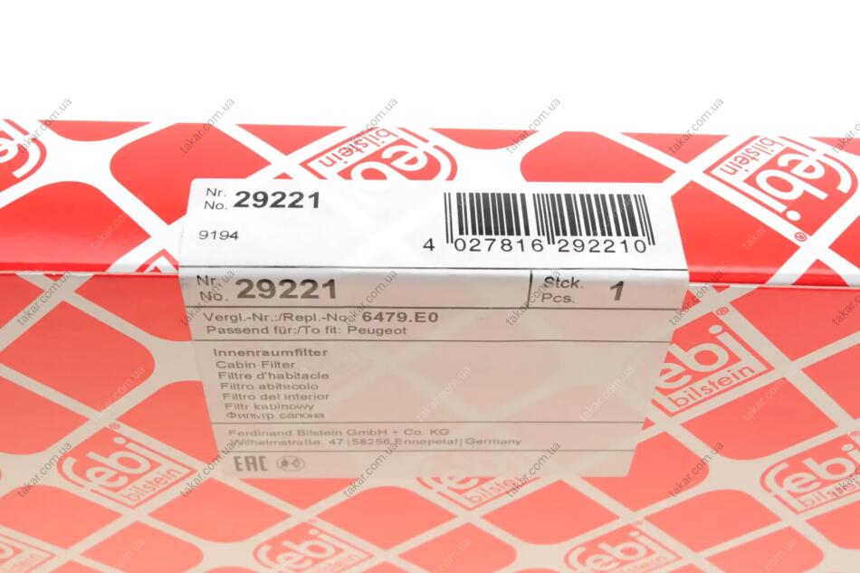 Фільтр салону тонкого очищення FEBI BILSTEIN 29221