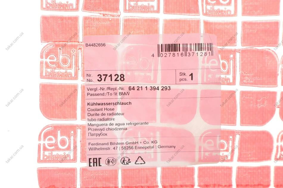 Патрубок водяного охолодження двигуна, від мотора на опалювальний вентиль BMW (FEBI) FEBI BILSTEIN 37128