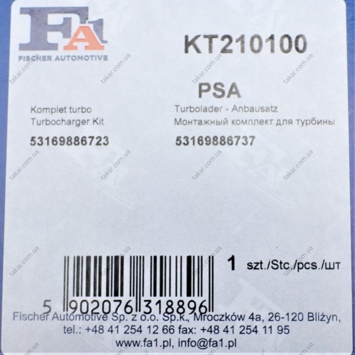 Комплект прокладок турбіни FA1 Fischer Automotive One (FA1) KT210100