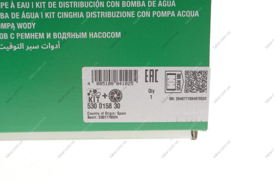 Ремінь ГРМ, комплект із водяним насосом 239 зубців INA 530 0158 30