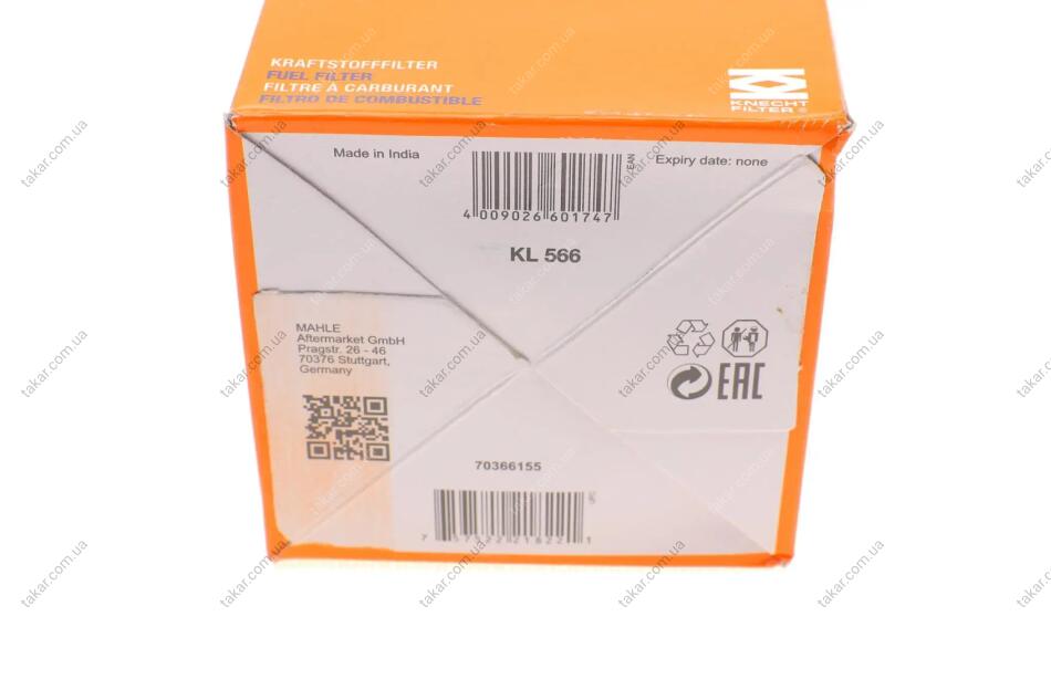 Паливний прямоточний фільтр MAHLE/KNECHT дизель MAHLE / KNECHT KL 566