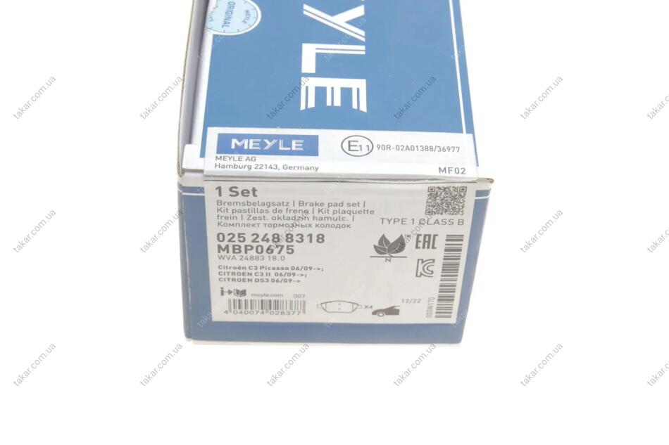 Комплект гальмівних колодок MEYLE 025 248 8318