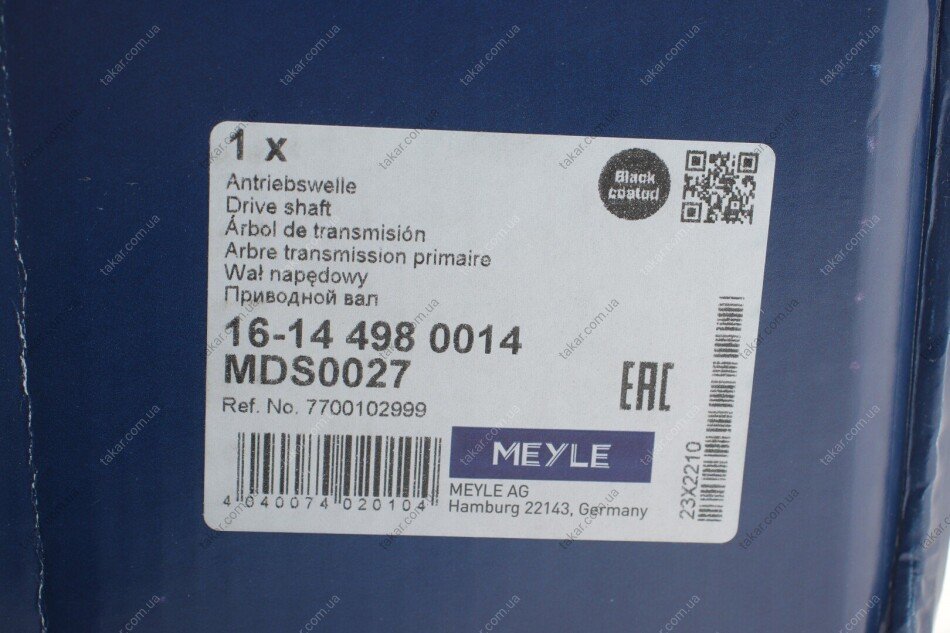 Привідний вал OPEL MOVANO/ RENAULT MASTER MEYLE 16-14 498 0014