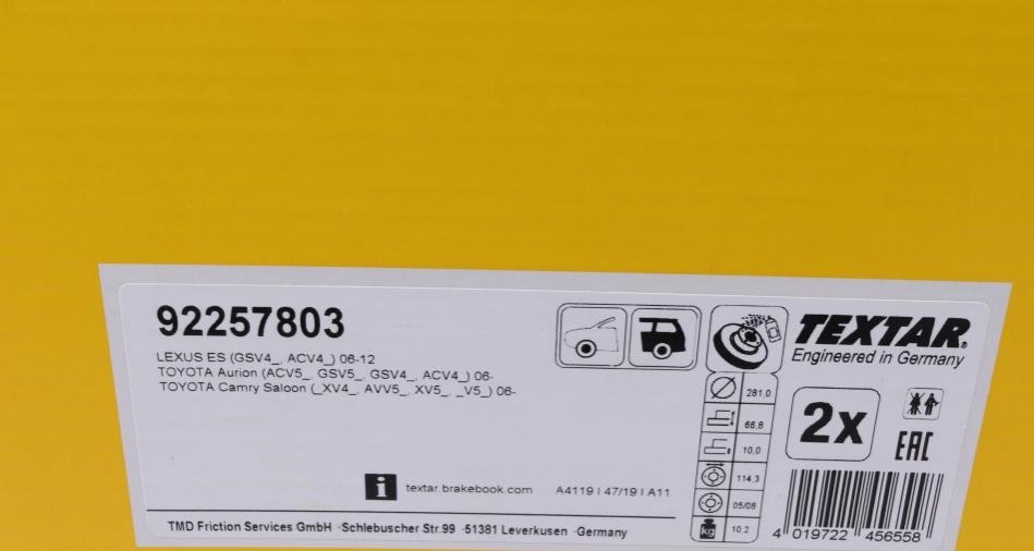 Аналоги "92257803 TEXTAR":