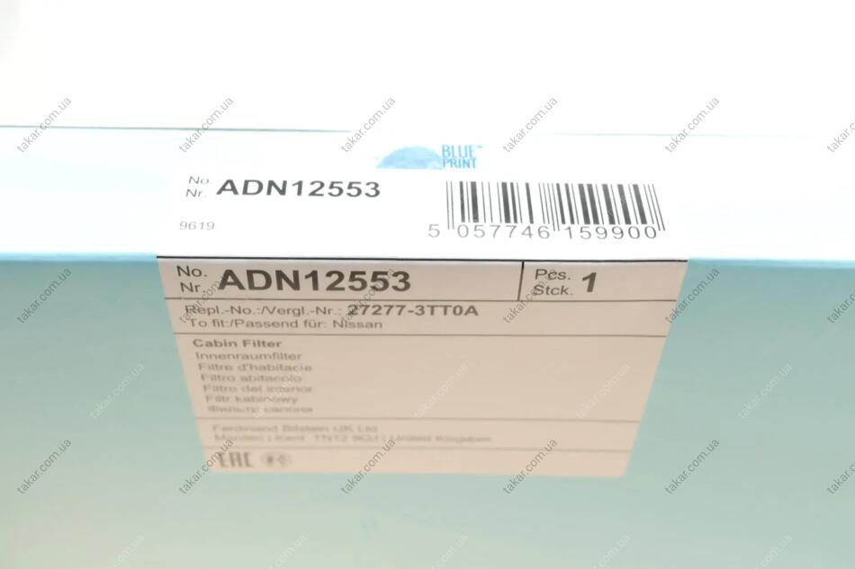 Фильтр салона тонкой очистки BLUE PRINT ADN12553