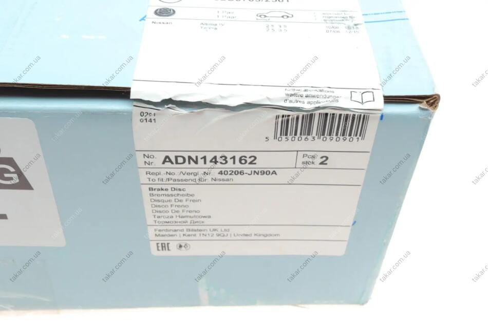 Торзмозной диск двухсторонний на передний мост вентилируемый 5 BLUE PRINT ADN143162