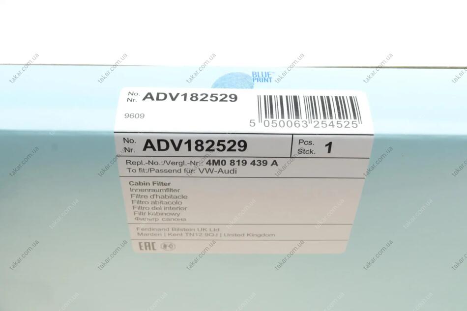 Фильтр салона угольный BLUE PRINT ADV182529