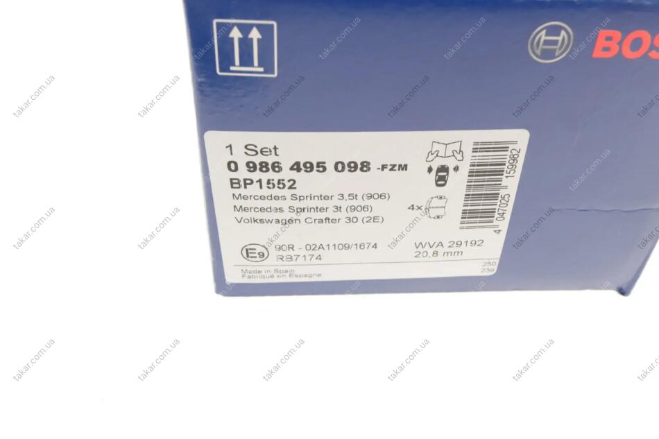Тормозные колодки передние дисковые BOSCH 0 986 495 098
