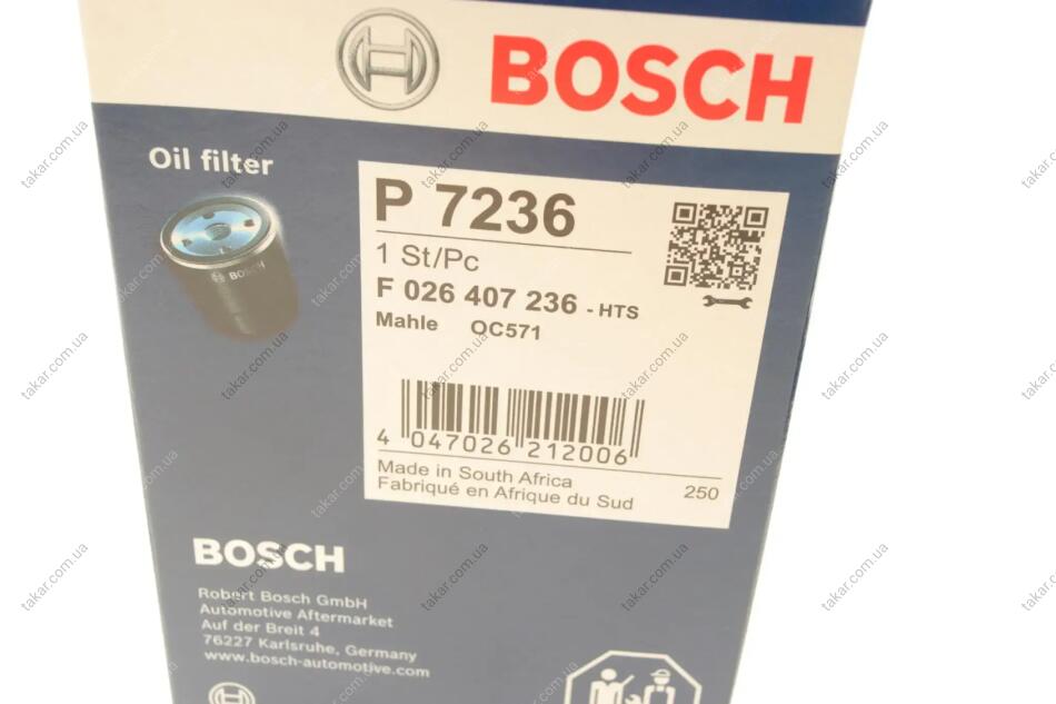 Масляный фильтр картридж патрон BOSCH F 026 407 236