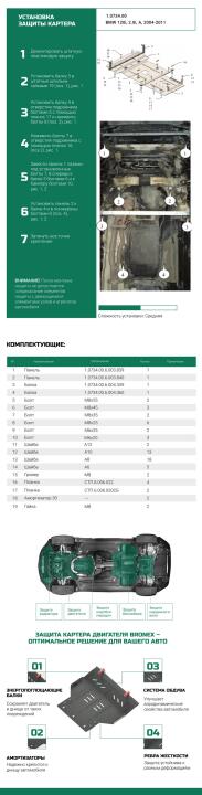 Установка защиты BMW 1- E 87 проста в исполнении и может быть выполнена самостоятельно, с помощью набора необходимых крепежей и подробной инструкции в комплекте.