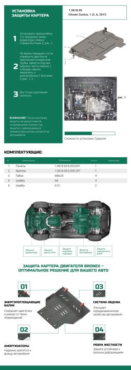 Защита двигателя, КПП, радиатора Citroen C4 Cactus Premium Bronex 102.0618.00
