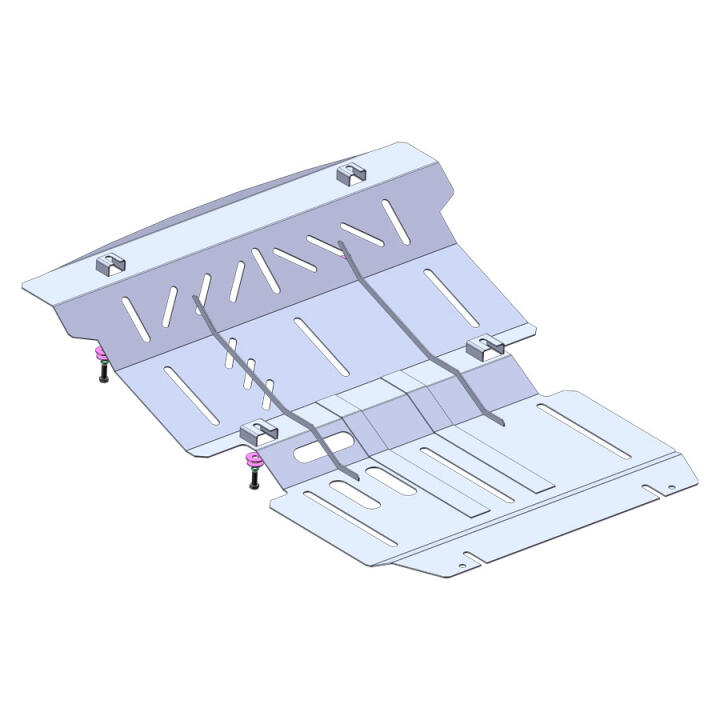 Изготовленная из оцинкованной стали холодного проката (материал Premium) защита двигателя, радиатора, редуктора Mitsubishi L200 5 обладает необходимыми качествами, чтобы предотвратить незапланированные внешние нагрузки. Поддон надежно заслоняет от повреждений, возникающих во время движения по неровным дорогам или при наезде на препятствия, двигатель, радиатор, редуктор автомобиля. Чтобы изделие служило долго, металл покрывается особым полимерным напылением, которое предотвращает коррозию на его поверхности после контакта с водой или грязью.