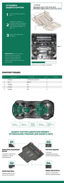 Защита двигателя, радиатора, редуктора Mitsubishi L200 5 2015-2018 Premium Bronex 102.0740.00M