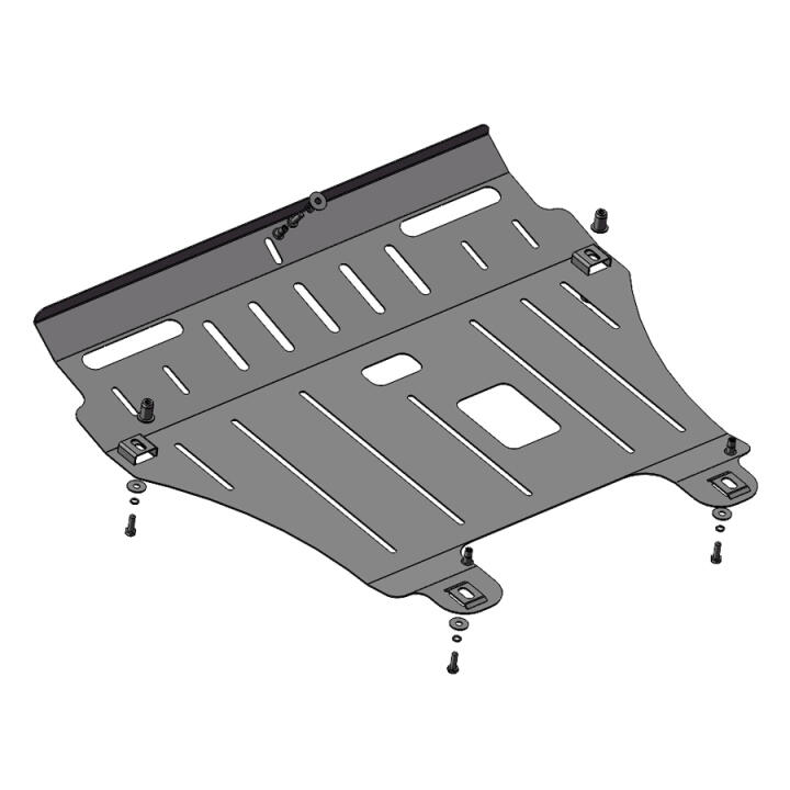 Изготовленная из высококачественной оцинкованной стали холодного проката (материал Premium) защита двигателя, КПП Acura RDX 1 2007-2012 обладает необходимыми качествами, чтобы предотвратить незапланированные внешние нагрузки. Поддон надежно заслоняет от повреждений, возникающих во время движения по неровным дорогам или при наезде на препятствия, двигатель, КПП автомобиля. Чтобы изделие служило долго, металл покрывается особым полимерным напылением, которое предотвращает коррозию на его поверхности после контакта с водой или грязью.
