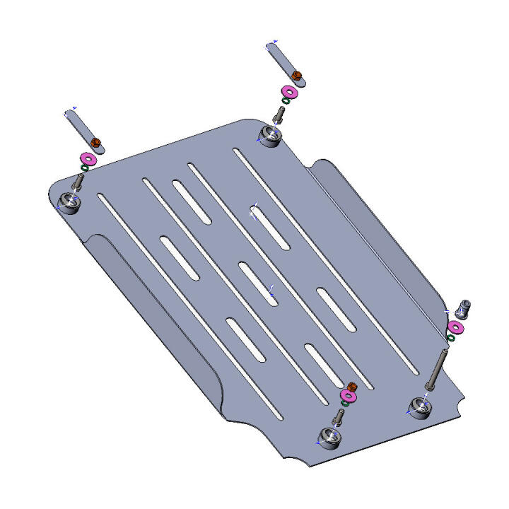 Изготовленная из стали холодного проката (материал Premium) защита КПП SsangYong Rodius обладает необходимыми качествами, чтобы предотвратить незапланированные внешние нагрузки. Поддон надежно заслоняет от повреждений, возникающих во время движения по неровным дорогам или при наезде на препятствия, КПП автомобиля. Чтобы изделие служило долго, металл покрывается особым полимерным напылением, которое предотвращает коррозию на его поверхности после контакта с водой или грязью.