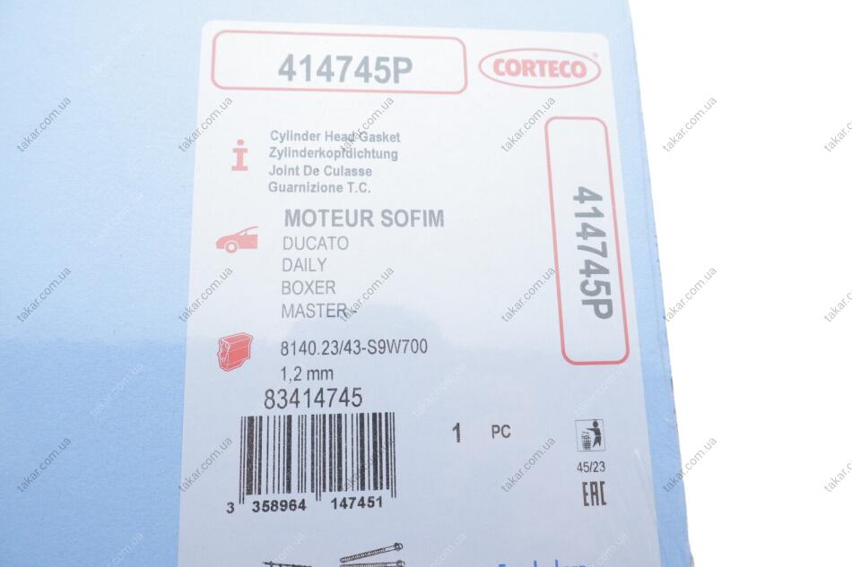 Прокладка головки блоку циліндрів FIAT/IVECO 2.8TD 8140.23/8140.43 1.2MM CORTECO 414745P