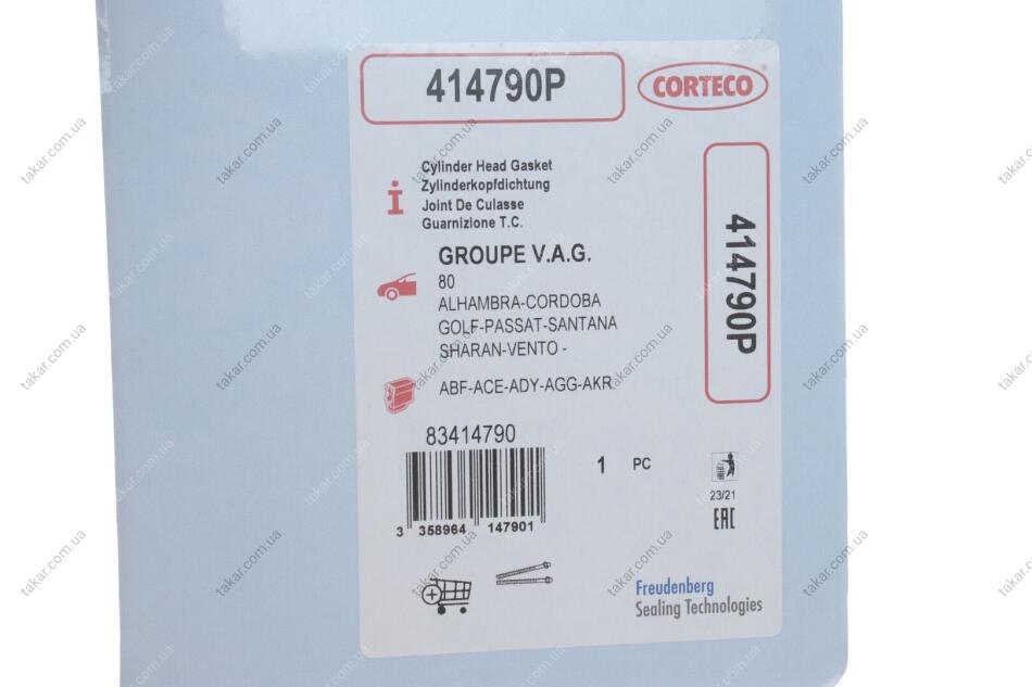 Прокладка головки блоку VAG 2,0i AAE/ABK/ABT/ACE/ADW 94-MLS CORTECO 414790P