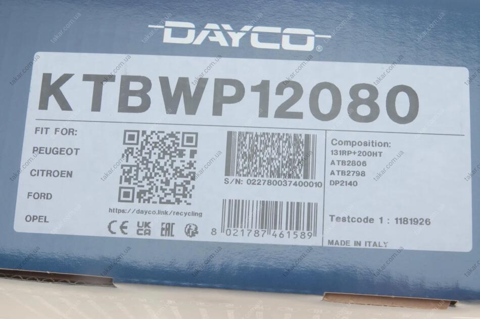 Комплект зубчастого ременя із водяним насосом DAYCO KTBWP12080