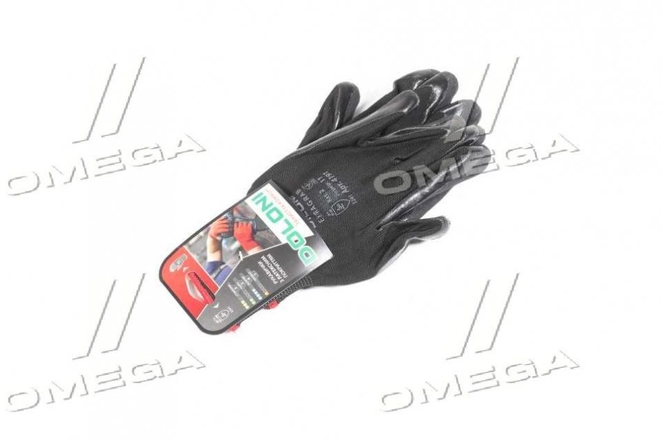 Перчатки трикотаж, черные, полиэстер, вязаный манжет, латекс, размер 11 DOLONI 4191
