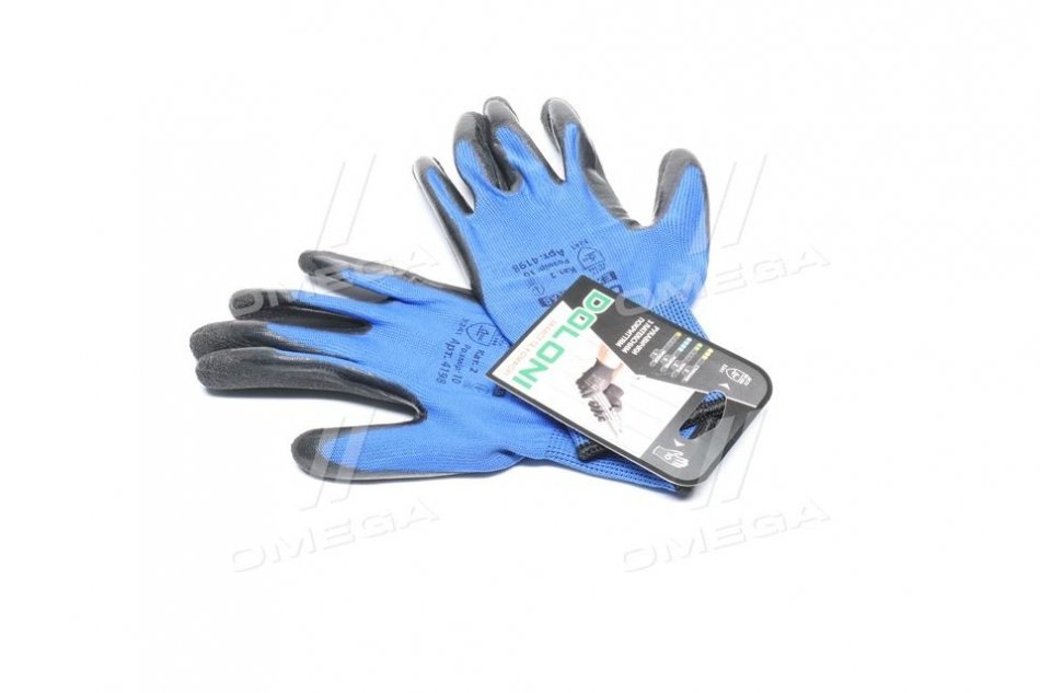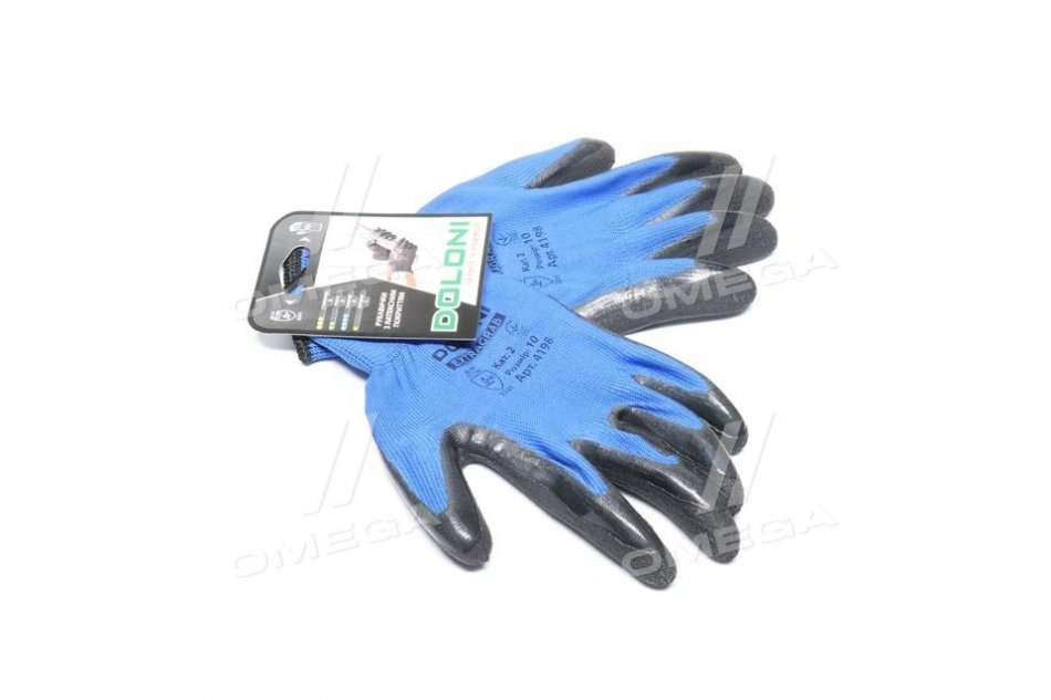 Перчатки трикотаж, синий, полиэстер, вязаный манжет, латекс, черный размер 10 DOLONI 4198