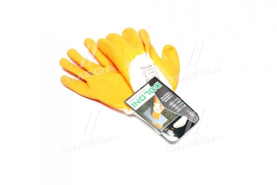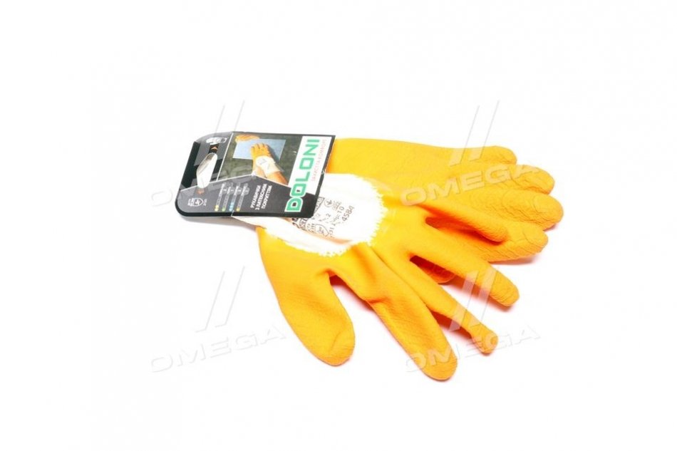 Перчатки трикотаж, хлопок, вязаный манжет, латекс, оранжевый размер 10 DOLONI 4584