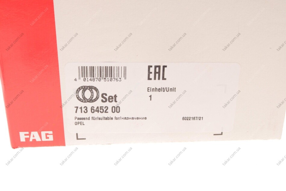 Подшипник ступицы колеса, комплект перед FAG 713645200