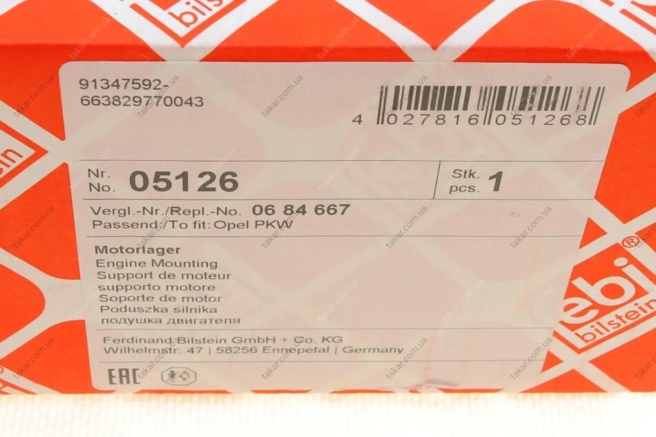 Подушка двигателя правая, передняя FEBI BILSTEIN 05126
