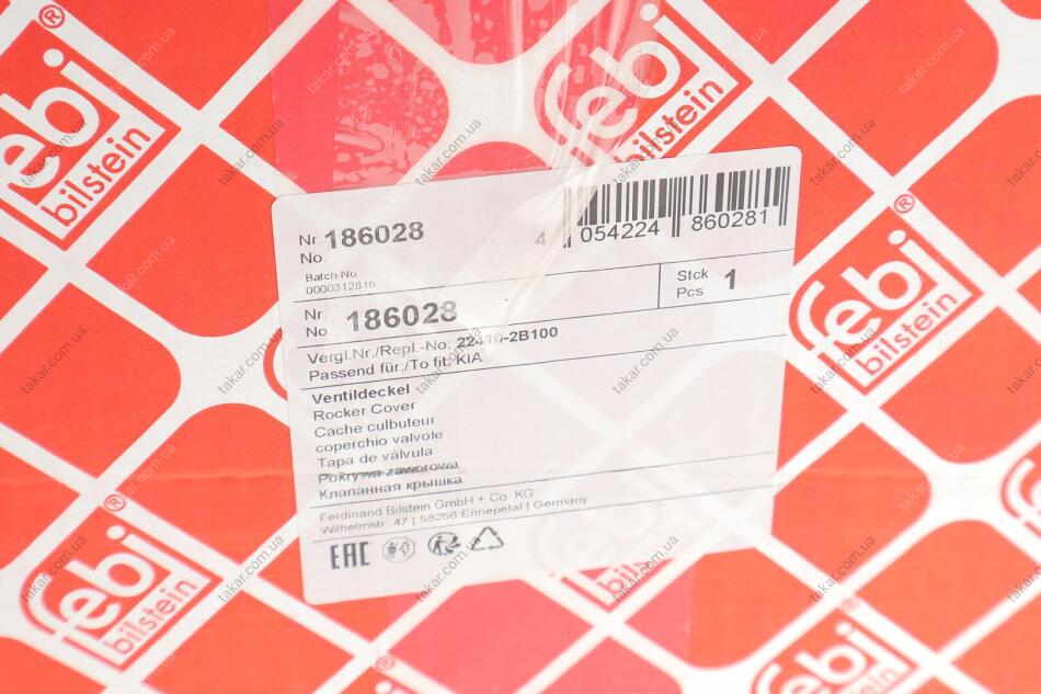 Клапанна кришка з клапаном вентиляції та прокладкою HYUNDAI 1.4/1.6 16V G4FA/G4FC (Febi) FEBI BILSTEIN 186028