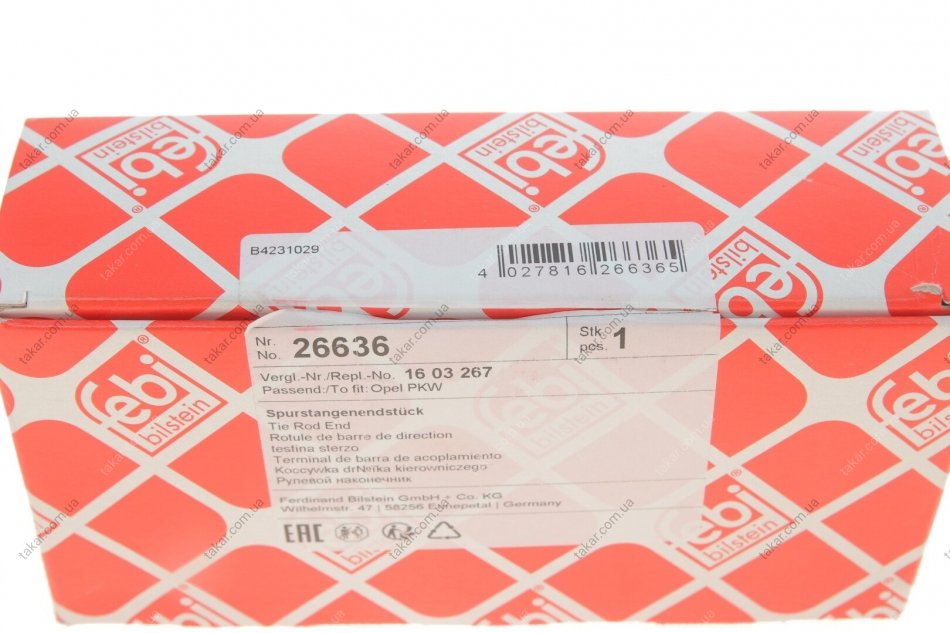 Наконечник рулевой тяги с гайкой. FEBI BILSTEIN 26636