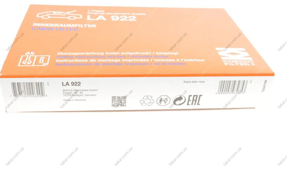 Аналоги "LA 922 MAHLE / KNECHT":