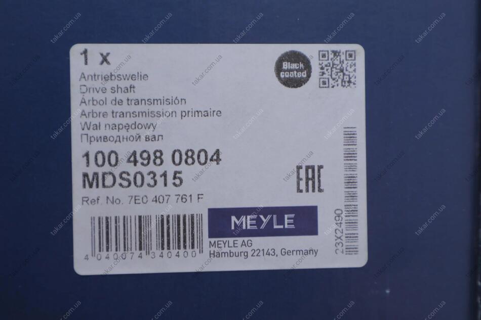 Вал приводний VW MULTIVAN T5, T6, TRANSPORTER T5, T6 MEYLE 100 498 0804