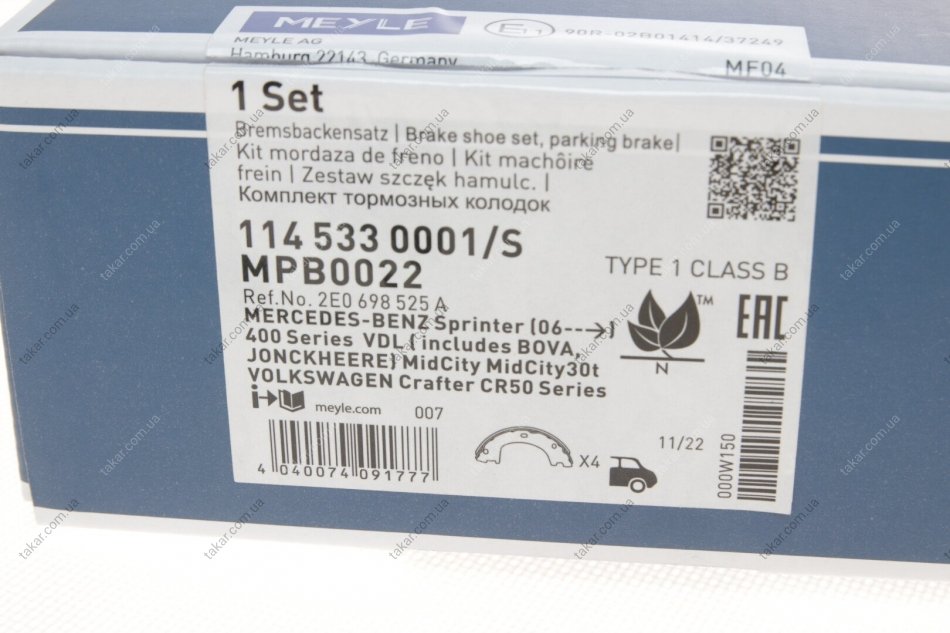 Комплект тормозных колодок, стояночного тормоза. MEYLE 114 533 0001/S