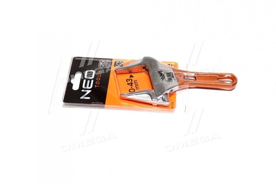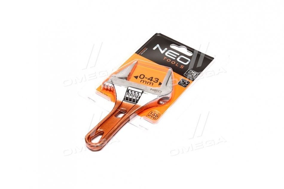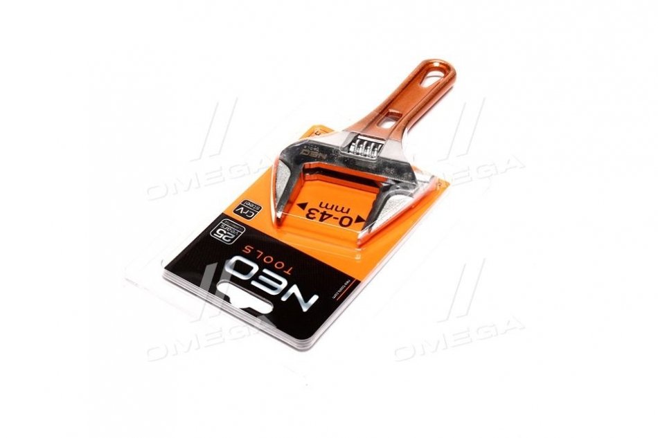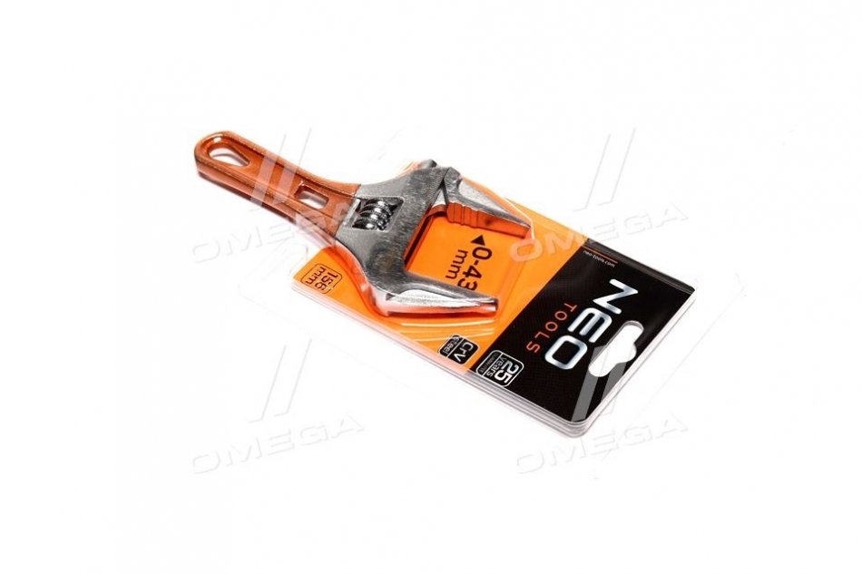 Разводной ключ короткий 156 мм, рабочий диапазон 0-43 мм.. Neo 03-021