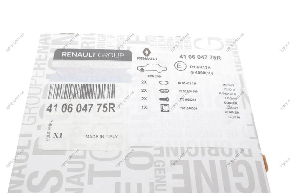 Тормозные колодки передние дисковые RENAULT 410604775R