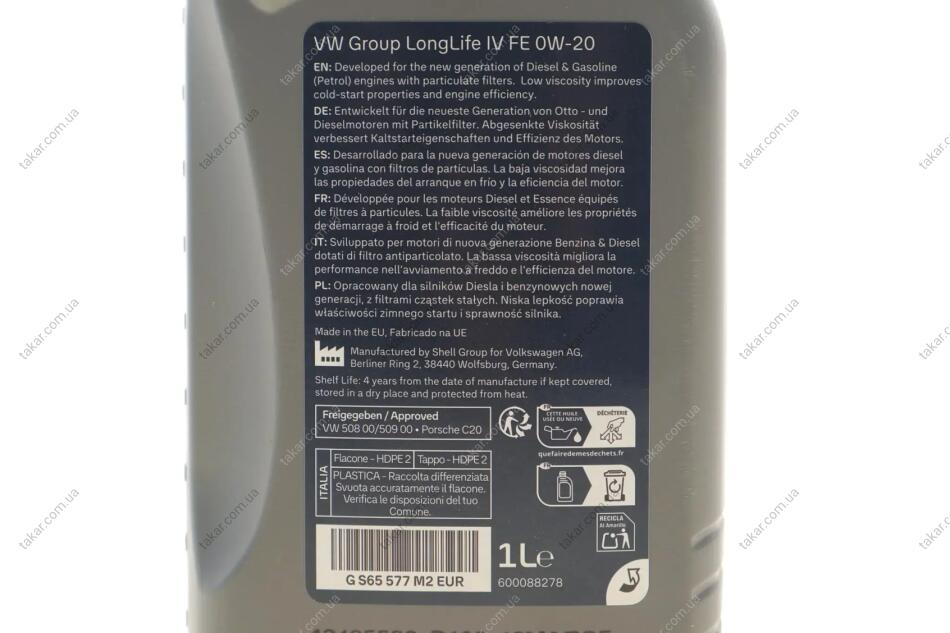 Олива моторна 0W-20 (1,0л) VAG GS65577M2